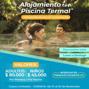 - Gorro de baño para la piscina (puede traer uno; sino tiene, puede arrendar o comprar directamente en la terma)